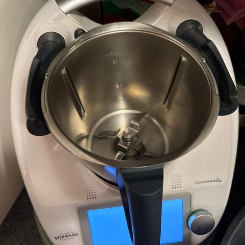 Thermomix TM31 är en köksapparat tillverkad av Vorwerk med en 500W motor som kan mixa och värma.