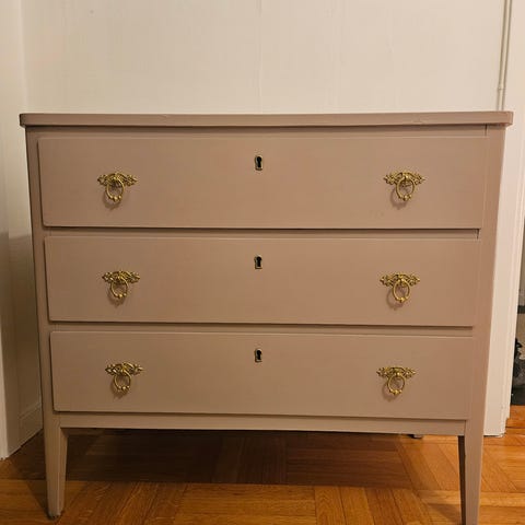 Säljer en byrå från IKEA — modell GURSKEN, med 3 lådor i ljusbeige träfärg.