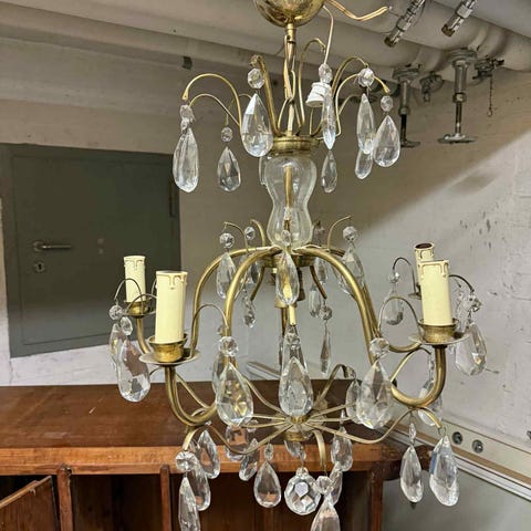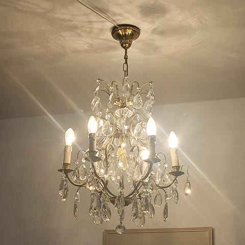 Vacker kristallkrona från Markslöjd med plats för 3 st lampor (går att använda med dimmer) och 5 st hållare för levande ljus.