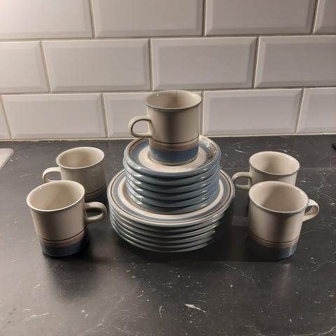 Arabia Kaffekoppar med fat i vitt porslin 16 delar