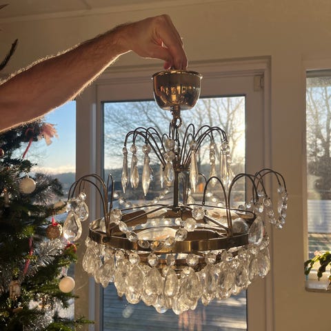 Åttaarmad (8-armad) Ljuskrona i svart smide, fint skick!