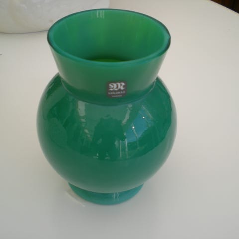 Grön klotvas i serien ”Plano” av Gunnar Nylund för Rörstrand. Stengods. Höjd 13 cm, diameter 17 cm. Två små nagg vid öppningen, se bild.