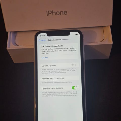 77% batterihälsa. Allt fungerar och mobilen är i ett väldigt bra skick.