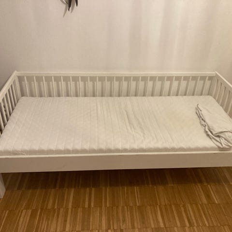 • Madrass (70x160 cm) i fint skick. Alltid använd med madrasskydd.