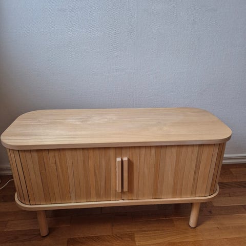 Tv-bänk Voice från Azzoro med lådor och vitrindörrar