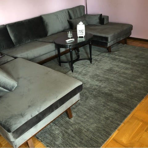 Copenhagen Compact 4-sits Vänstervänd U-formad Large Soffa med Divan och Schäslong i Sammet från Trademax. Färg: Mörkgrå