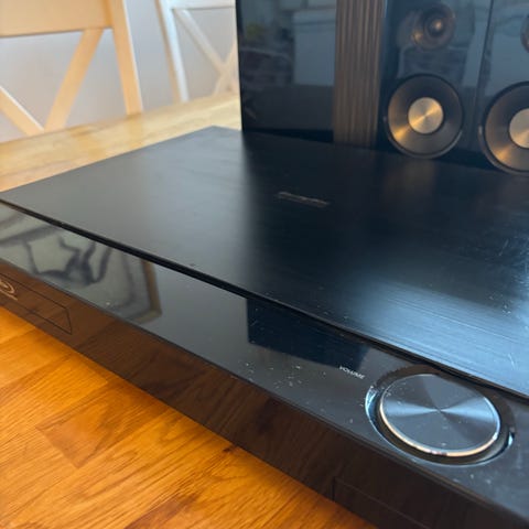 Fyra av högtalarna saknar fötter (de har tidigare varit väggmonterade)