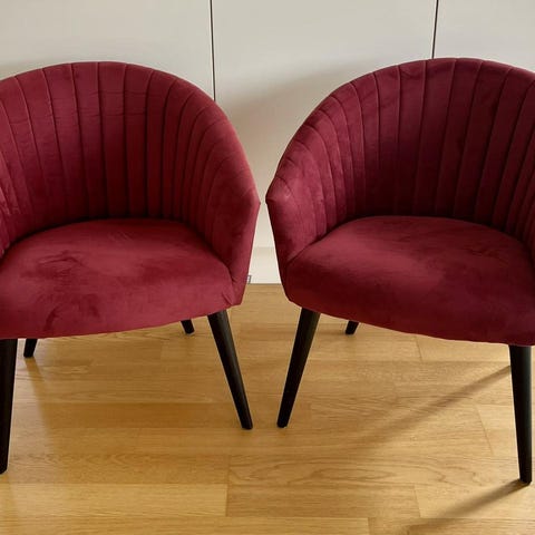 2st. Fåtöljer i sammet och svarta ben . Fåtöljer i bra skick .