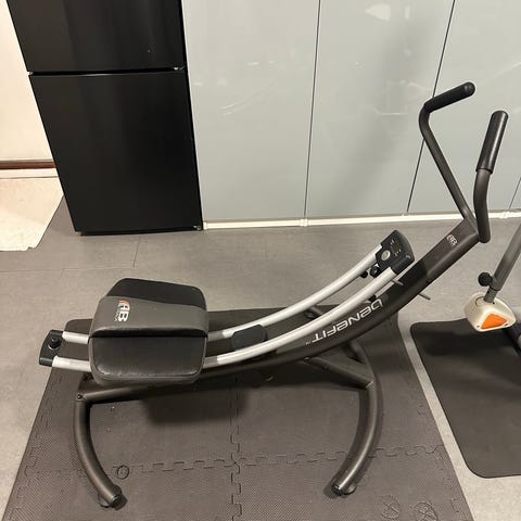 Ab Swing träningsredskap för magmuskler i röd och grå färg. Utrustad med handtag och sittplatta för komfort under träning. Designad för att hjälpa till vid mag muskel träning , ihop fällbart , lett använd , finns i Västerås .