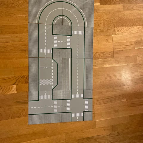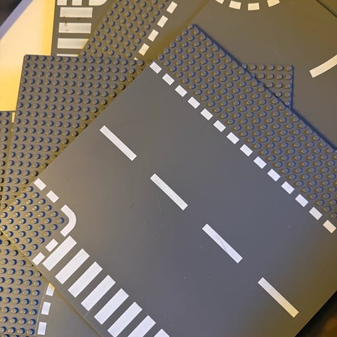LEGO vägbitar för lekset i svart med vita vägmarkeringar. Gör det så mycket roligare att leka med LEGOt. Med hela 12 delar bygger man snabbt upp en stad för sina byggen.