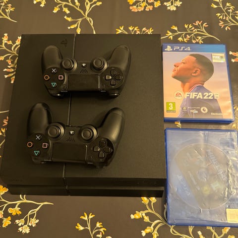 Ps4 slim 500gb med 1 handkontroll, laddstation, 8 spel, laddkabel till handkontroll och strömkabel till handkontroll pris 1500 kr