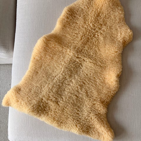 Litet ljust tunnt mjukt skinn, perfekt att ha i barnvagnen, tvättbart.