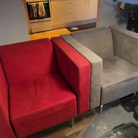 Utöver soffan tillkommer även två fåtöljer också.