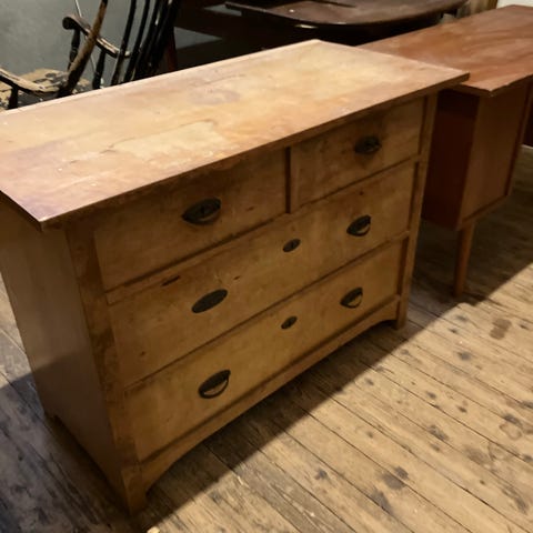 Stilig byrå med fyra lådor. Har ett par små fläckar på ovansidan (se bild).