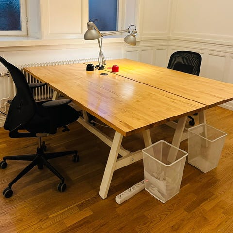 Vackert bord, 70x70x76 cm, lätt att montera. dubbelsidiga lådor.