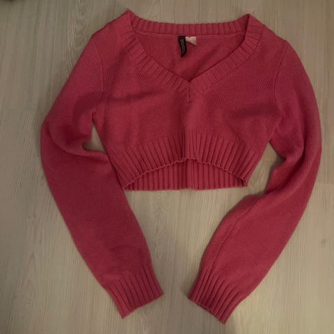 Finstickad tröja från H&M Divided i storlek 34 med långa ärmar och rund halsringning. Tröjan har ett randigt mönster i svart, röd, orange, gul, grön, blå och lila. Superfin, men för liten för mig tyvärr.