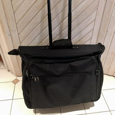 Resväska som håller måtten för Handbagage-väska. I kraftigt tygmaterial. Väskan har 3 yttre fack med dragkedja och två handtag. Teleskåphandtag och 2 hjul. #kabinväska #cabinbag