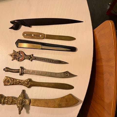 En samling av tygmärken med olika militär- och polisrelaterade motiv, inklusive emblem från Ohio Rifle Association, Los Angeles Deputy Auxiliary Police, Beretta USA, 355 Fighter SQ Triple Nickel, Nevada och andra säkerhets- och militärorganisationer. Märkena varierar i form, färg och design och kan användas för samling eller dekorativa ändamål. 200 sek för 10 st.