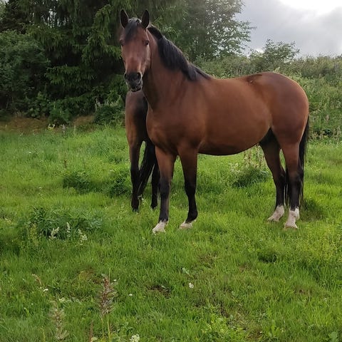 Luna är en pigg o glad häst som älskar att arbeta. Gillar lika mycket pass på banan som mysiga turer ute.