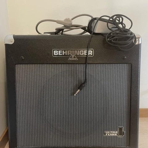 Behringer V-Amp 2 Gitarrtillbehör med flera förstärkar- och effektfunktioner. Enheten är utformad för att användas med elgitarr och erbjuder olika ljudinställningar för att anpassa ton och ljudbild.