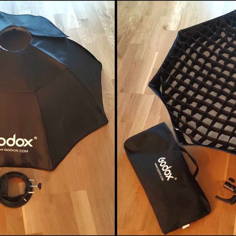 • Godox P90L Parabolic Softbox (90 cm) för mjukt, riktat ljus med fin falloff