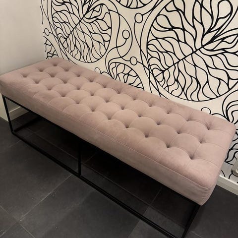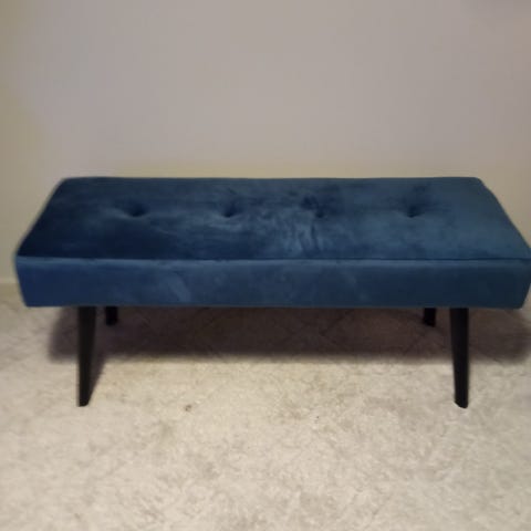 Sits klädd i rött tyg. Gedigna underreden av trä (ask).