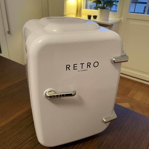Kyler och värmer efter behov och är idealisk för skrivbordet, sovrummet eller som skincare-kyl.