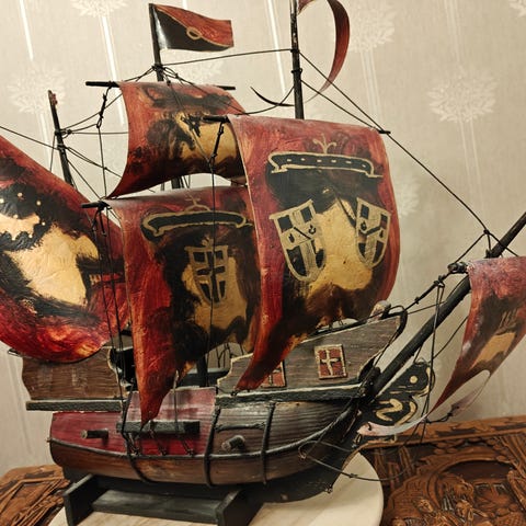 Svartvita fotografier av fartyg i ram