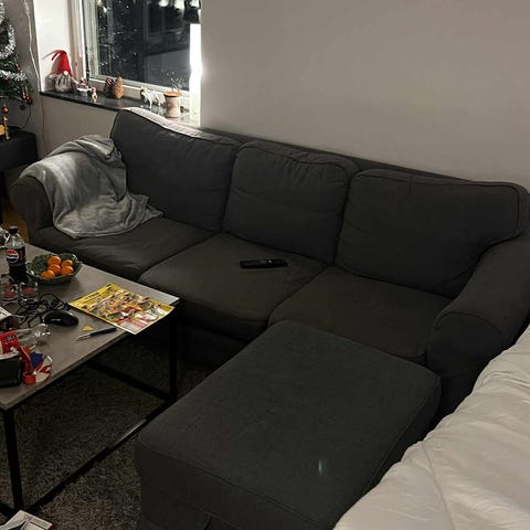 Två fina svarta soffor från IKEA med tyg som känns lite som något i ull. Gott skick!