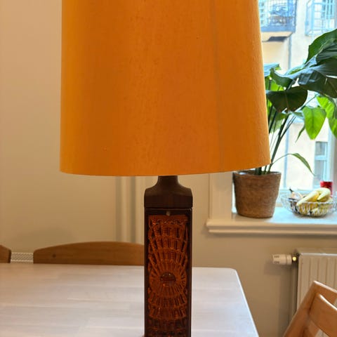 Nyckelord: sällsynt bordslampa träkropp strukturerade glasdetaljer, retrodesign varmt sken stilfull hem, höjd 43,5 cm bas 9,5×9,5 cm vikt 3,2 kg, mycket fint skick elanslutning, vintage lampa vardagsrum sovrum arbetsrum retrohörna, exklusiv hemdekoration, samlarobjekt, retro charm tidlös elegans, unikt föremål konstnärlig detalj, klassisk design, presentidé julklapp inspiration, antik stil bordslampa