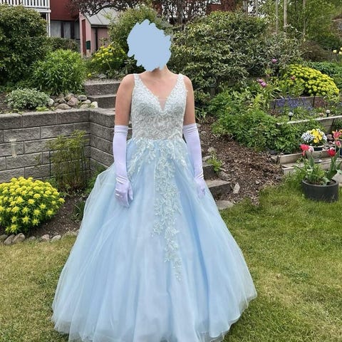 Jag är 150 men hade en liten klack på baldagen samt att jag hade den ”bredaste” underkjolen under för att den skulle bli extra puffig!
