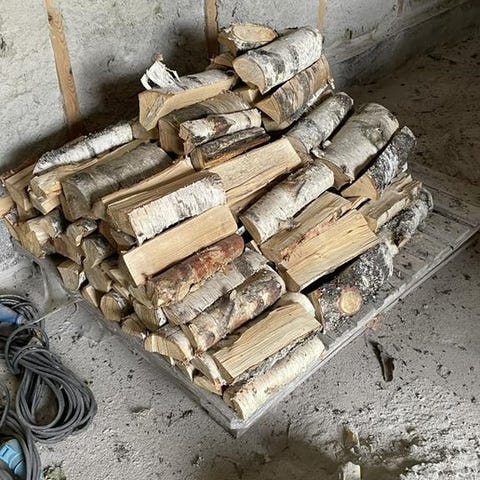 Björkved säljes. Packad i 1,5 m3 säck. Klyved under våren 2025. Redo att eldas med till hösten.