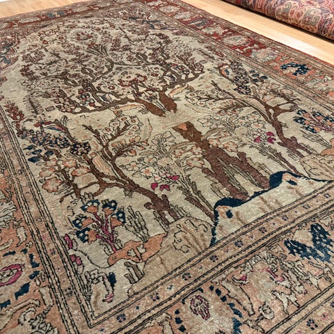Antik Kirman Laver handknuten persisk matta ca 1910 – figural, 220×135 cm