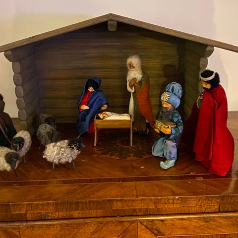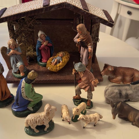 Jättefin julkrubba som är 38cm bred och 23 cm hög på högsta stället. Komplett med tillhörande figurer. Endast avhämtning