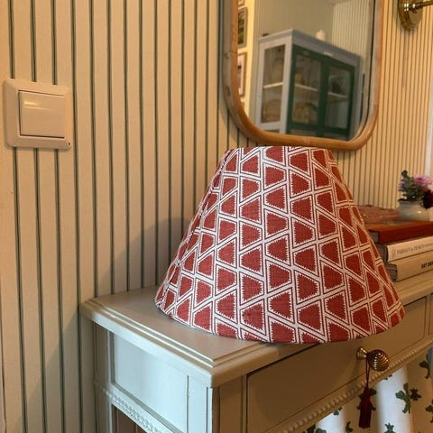 Lampskärm modell större från Lisa Bengtsson studio i mönster budouir. Säljs ej längre. Fantastiskt mönster men passar tyvärr inte längre in i inredningen här hemma.