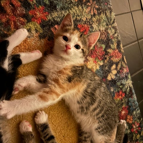 Nu har vi bara en hona kvar i vår kull av Norsk skogkatt som söker sitt föralltid hem. Hon är mycket social och framåt och älskar att gosa och sova i famnen efter lekstunden.