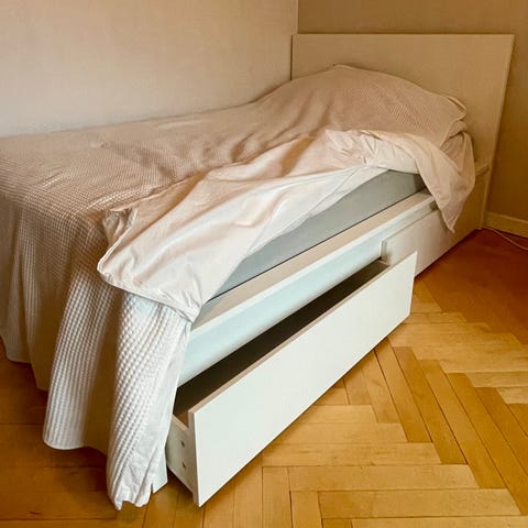 Enkel sängram + madrass
