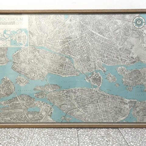 Kartan visar historiska geografiska detaljer år 1743 och är tryckt i färgade toner. Inköpt på Historiehemmet.se. Nypris 389 kr.