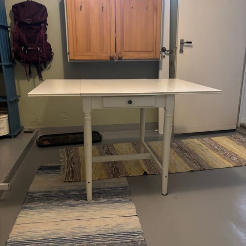 Matbord i bambu med klaffar, har lite små repor och märken i skivan. Måtten på bordet går att se på bild 3