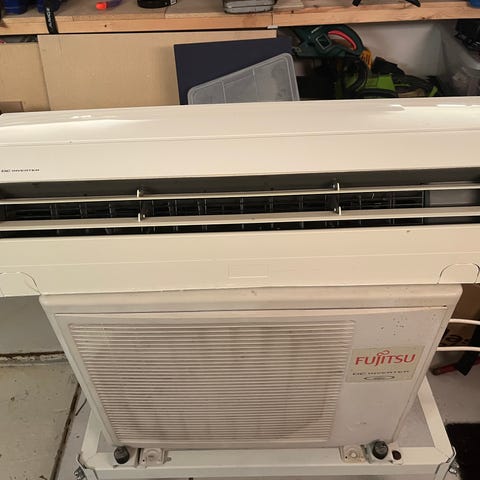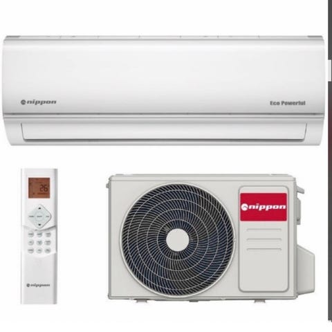 split-system bestående av en inomhusenhet och en utomhusenhet. Produkten levereras med fjärrkontroll, installationsrör och väggfäste. Enheten är avsedd för inomhusklimatreglering och kan användas för både kylning och uppvärmning.