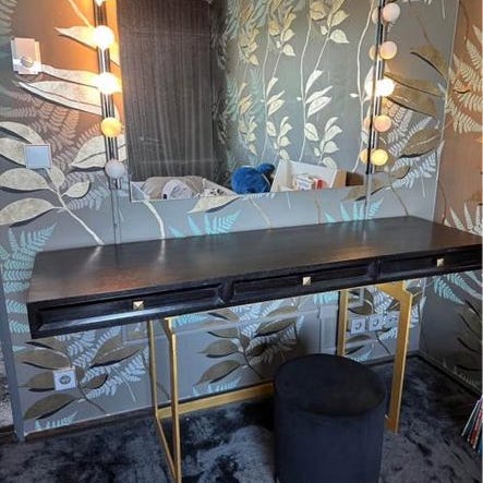 Skrivbord/sideboard/sminkbord med bordsskiva av mörk marmor säljes pga flytt. Knappt använd. Nypris 7 149kr.