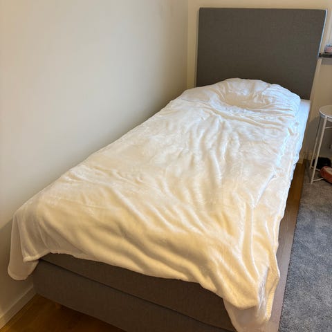 Säng med gavel och bäddmadrass (endast 3 månader gammal). Har varit madrasskydd så den är som ny!