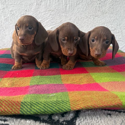 Jag har en underbar kull på 3 taxvalpar som nu söker sina nya kärleksfulla hem. De är födda 31 november vilket gör dem leveransklara from. 27 december.