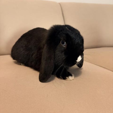 Han är en lugn och go kille som förtjänar ett hem där han får mer sällskap och gärna en kaninkompis, då han känner sig lite ensam hos oss idag.