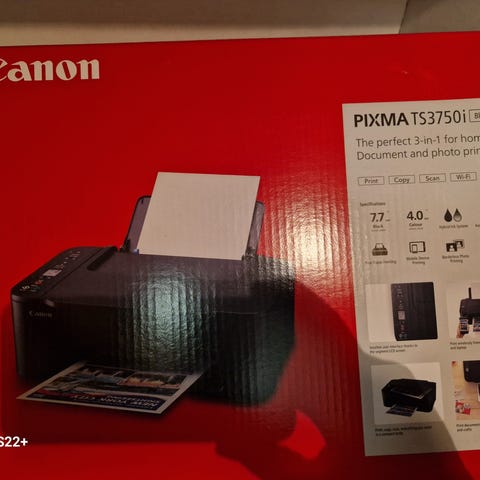 Skrivare (Canon PIXMA TS3350) i mycket bra skick. Bläckpatroner (svart + färg) finns i, men den har börjat varna för låg bläcknivå så nya patroner behöver nog införskaffas (jag tipsar om att köpa Canons egna patroner då jag har testat andra men de har inte funkat).