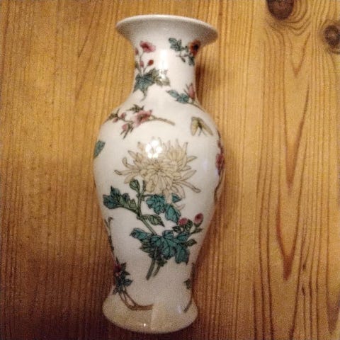 Blå keramikvas med fågel- och näckrosmotiv