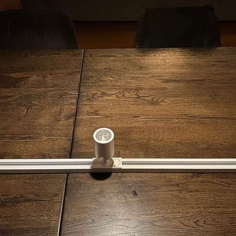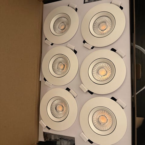 6 st Hidealight spotlights och två takskenor. Skenorna har varit uppsatta separat så de kan ej kopplas ihop med det som ingår i detta paket.