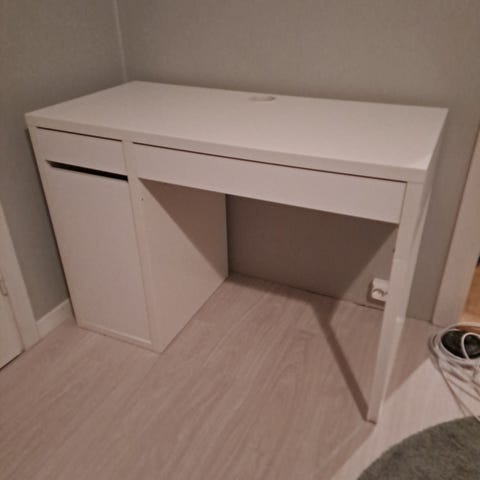 Vitt skrivbord/arbetsbord i mdf med grå metallben. Fint skick.