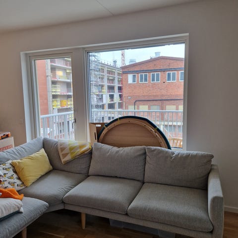 Hörnsoffa Med pall delas i 3 delar så väldigt lätt att transportera