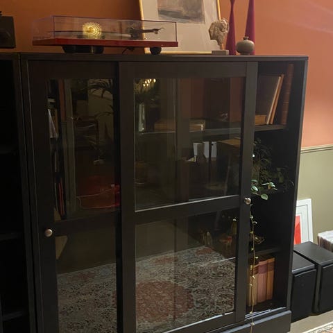 Säljer ett Billy/Oxberg vitrinskåp i svart. Fint skick.